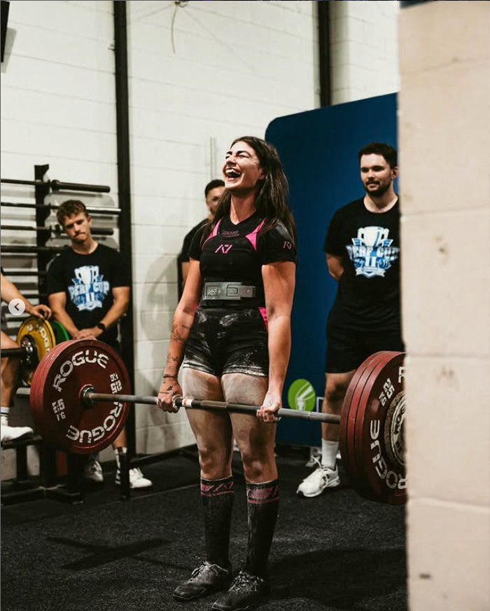 The loud, passionate, and goofy powerhouse who's been throwing weights around for three years and is locked in on one goal: chasing strength. She’s gunning for nationals in May for powerlifting, and there’s no stopping her.